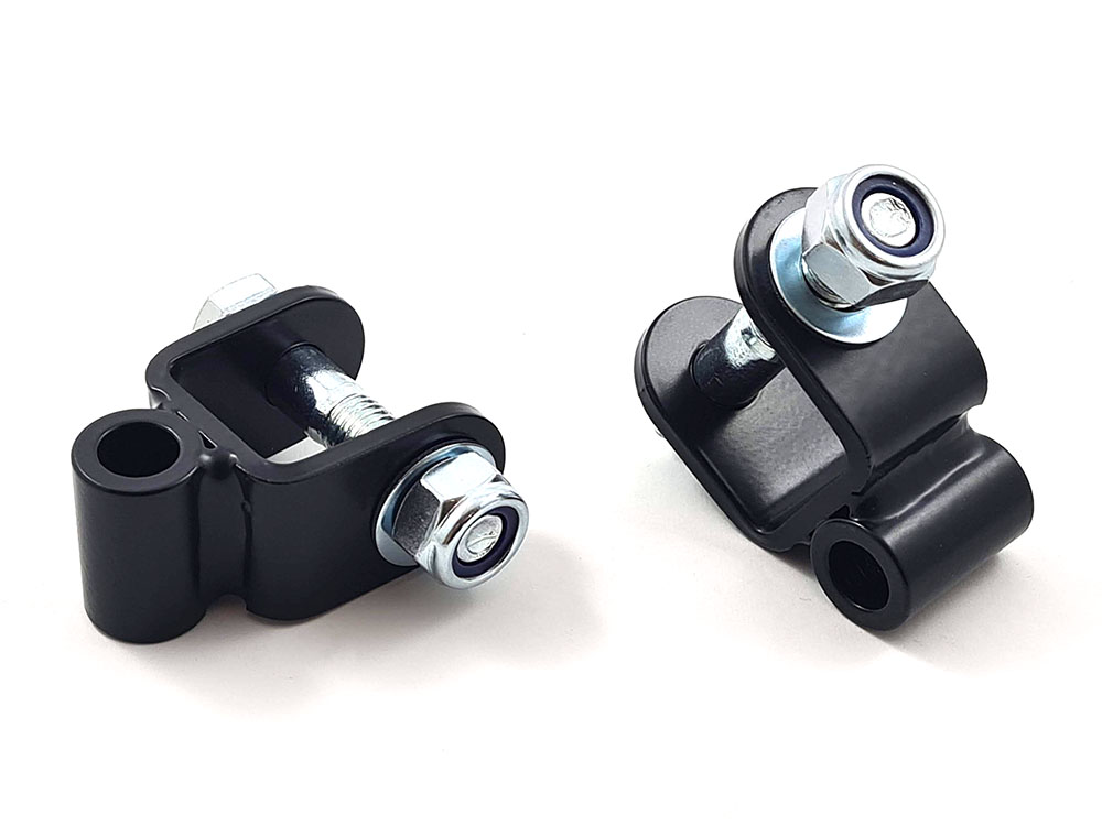 These shock relocation extensions extend the front shocks on a Jimny by 40mm, and rotate the shock lower mount by 90 degrees to give the shock greater freedom of movement. They are great for giving extra droop travel to increase suspension flex when lifting a Jimny using coil spacers or longer springs.